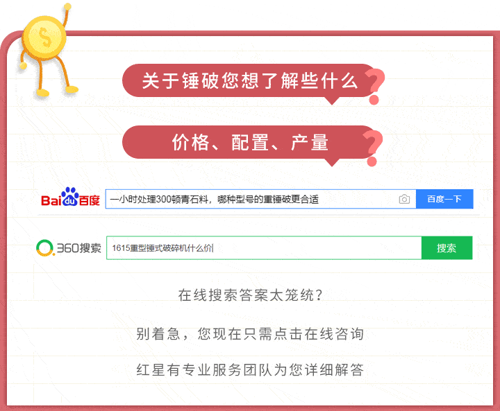 大家若是想具體了解1615重型錘式破碎機的價格,可選擇在線咨詢 的方式,我們的客服人員具備一定的專業設備知識,在為您進行準確報價的同時,還可提供一些合適的方案或者建議供您參考。