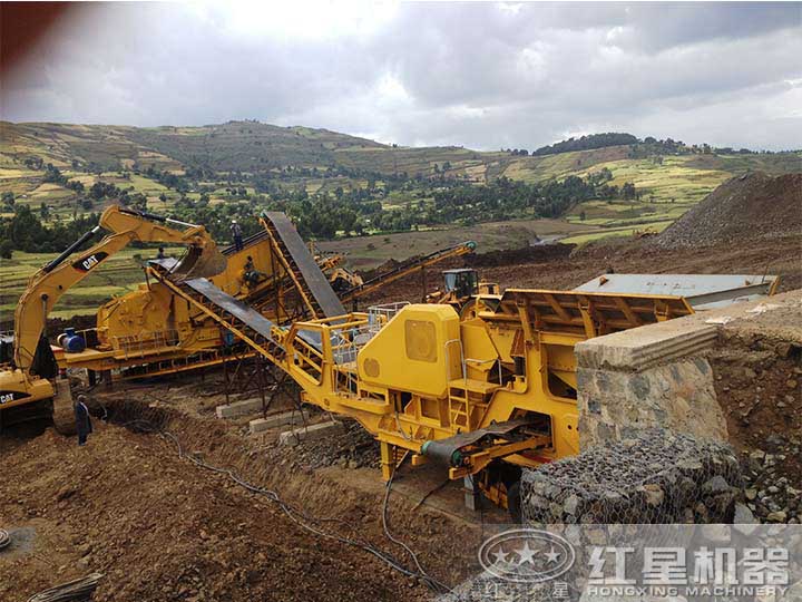 主要破碎設(shè)備:顎式移動(dòng)破碎機(jī)、反擊破+振動(dòng)篩移動(dòng)破
